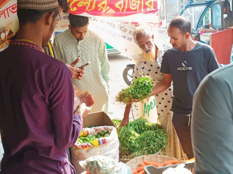 মৌলভীবাজারের কমলগঞ্জে পবিত্র রমজান মাস উপলক্ষে বিনা লাভের বাজার চালু করা হয়েছে। বিভিন্ন পণ্য কিনতে ভিড় করেছেন ক্রেতারা। যাঁর যাঁর পছন্দ ও চাহিদামতো বিভিন্ন ধরনের পণ্য কিনে নিয়েছেন। স্বাভাবিক বাজারের তুলনায় কম দামে পণ্য কিনতে পেরে ক্রেতারা খুশি।